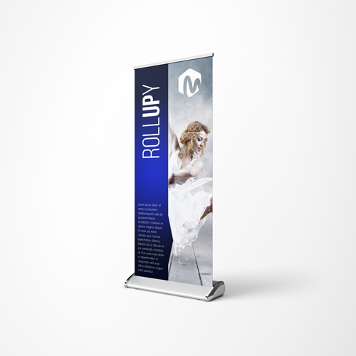To standardowy roll up drukowany na płótnie blockout. Projekt do takiego wydruku powinien być przygotowany w wymiarach Zobacz jak przygotować roll up: Cena: od 432zł